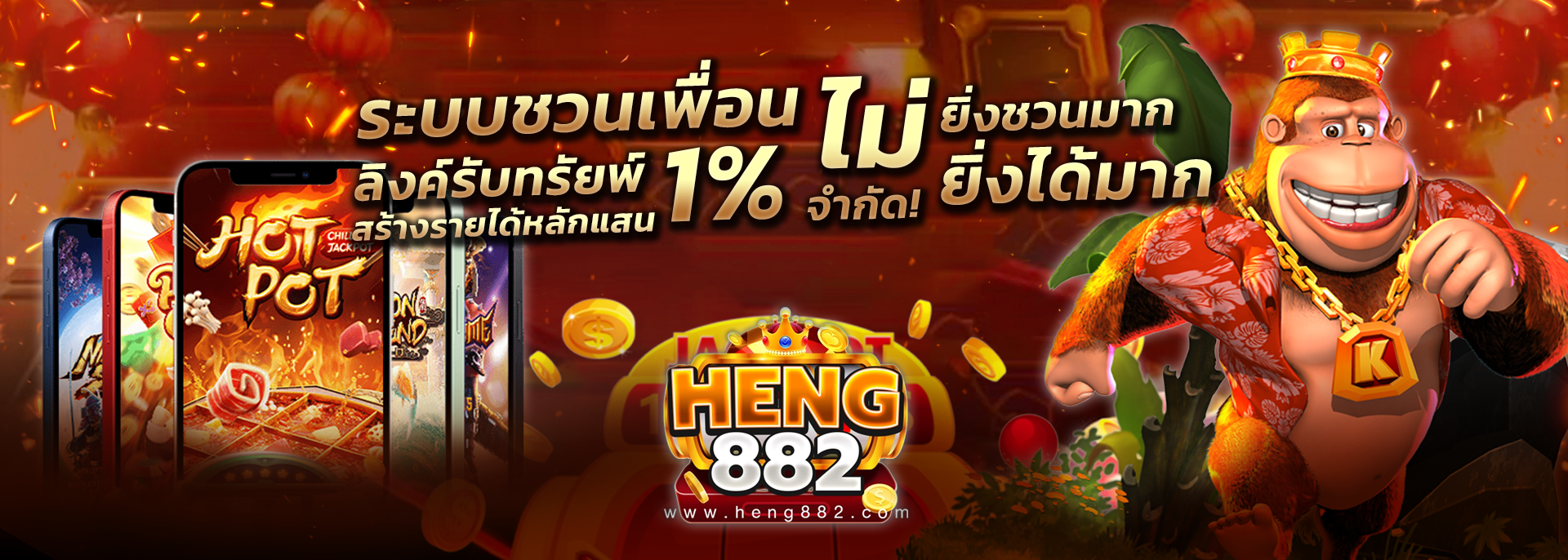 สำหรับสมาชิกที่ชื่นชอบการเล่นสล็อต ทาง heng882 ก็มีโปรโมชั่นพิเศษมอบให้โดยเฉพาะ ไม่ว่าจะเป็นฟรีสปินพิเศษ หรือโบนัสเพิ่มเติมเมื่อเล่นเกมที่กำหนด ส่วนผู้ที่ชอบเดิมพันกีฬาก็จะได้รับโปรโมชั่นค่าคอมมิชชั่นพิเศษ และโบนัสสำหรับการแทงบอลสเต็ป